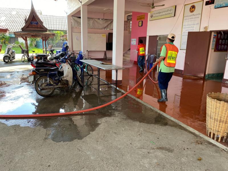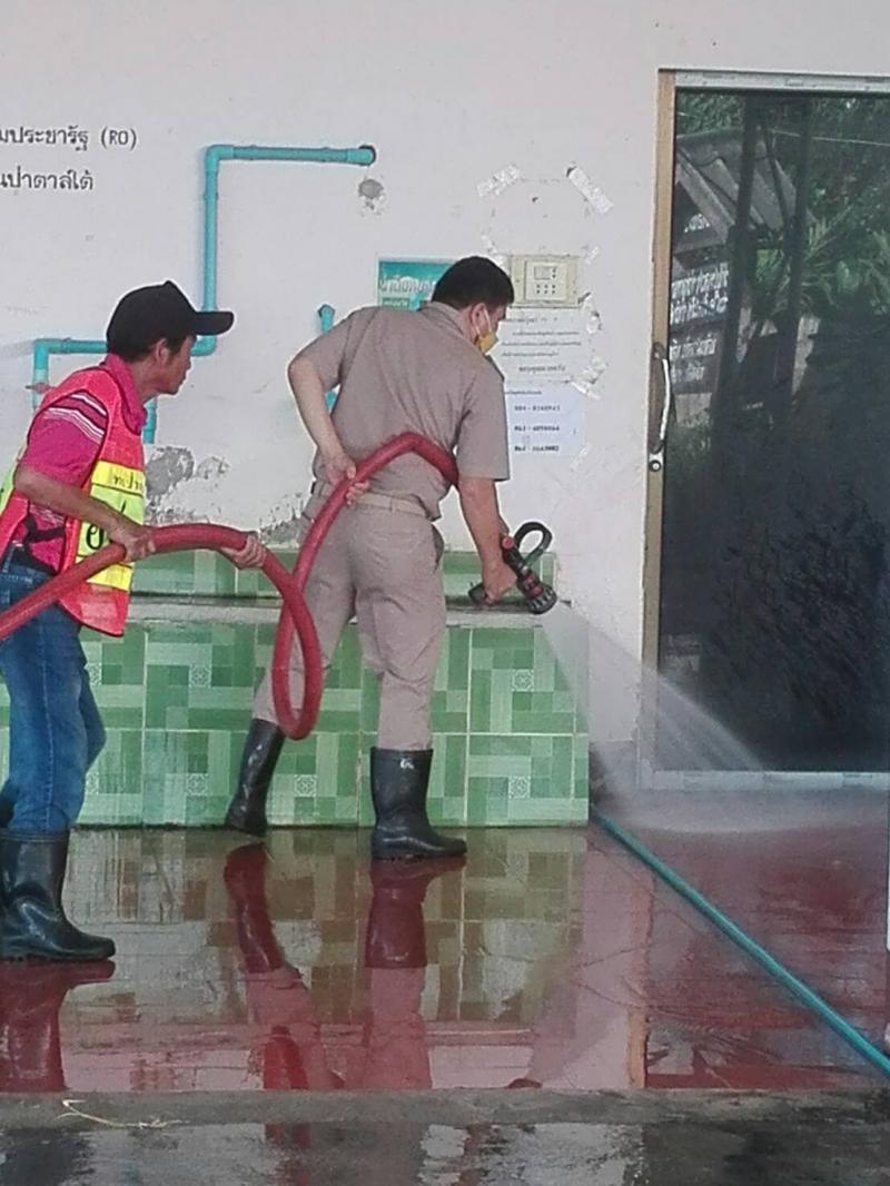 วันจันทร์ที่ 13 กันยายน 2564 นายจำนงค์ มินทขัติ นายกเทศมนตรีตำบลป่าตาล มอบหมายให้งานป้องกันและบรรเทาสาธารณภัย สังกัดสำนักปลัดเทศบาลตำบลป่าตาล ลงพื้นที่ทำความสะอาด พร้อมพ่นยาฆ่าเชื้อบริเวณหอประชุมบ้านป่าตาลใต้ หมู่ที่ 4 ร่วมกับ ร้อยเอกวรยศ สัญญารัตนพิชณ์ สมาชิกสภาเทศบาลตำบลป่าตาล นายบุญหล่อ สุดตา ผู้ใหญ่บ้านป่าตาลใต้ หมู่ที่ 4 อสม. และประชาชนในพื้นที่ เพื่อฆ่าเชื้อ เนื่องจากเคยใช้เป็นสถานที่กักตัวและไม่มีผู้กักตัวแล้ว
